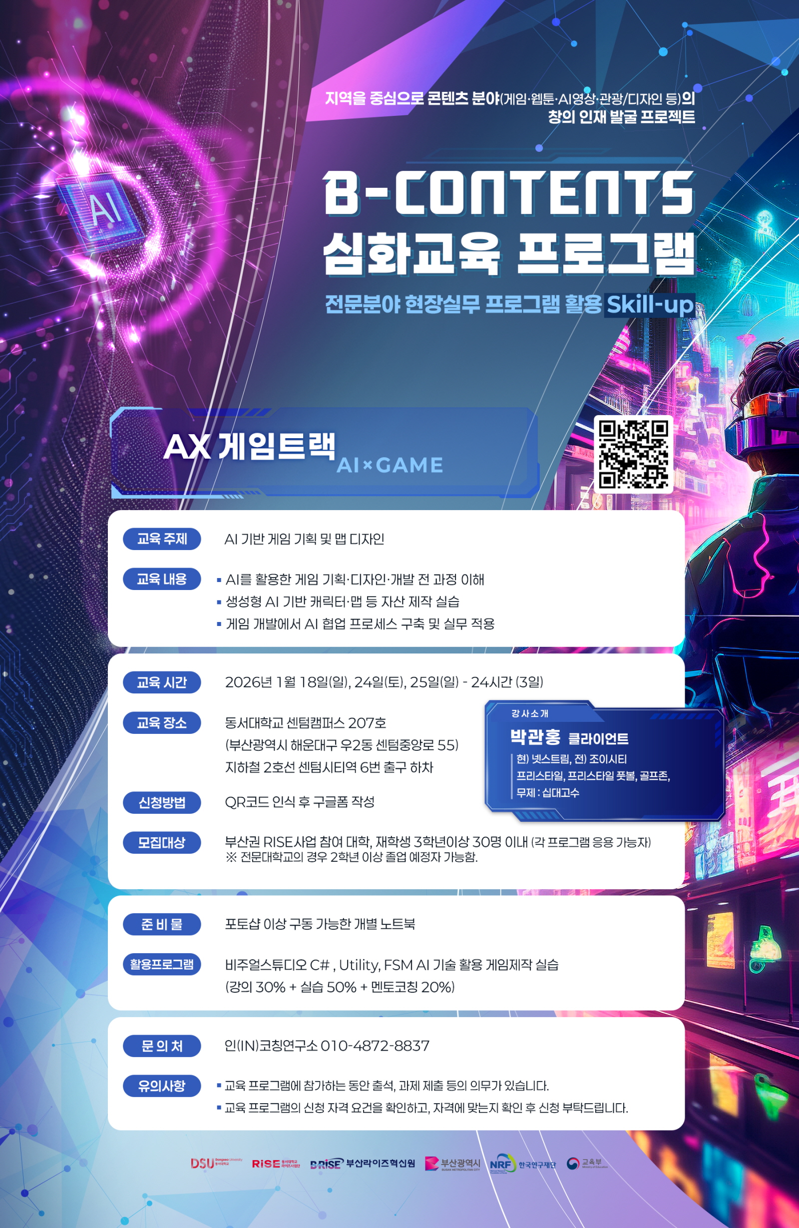 안녕하세요 휴먼ICT융합전공입니다. 2025 B-Contents 심화교육 프로그램에 대해 안내드립니다.