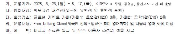 2026-1학기 글로벌 커넥트 카페 (GCC) 운영에 대해 안내드립니다.