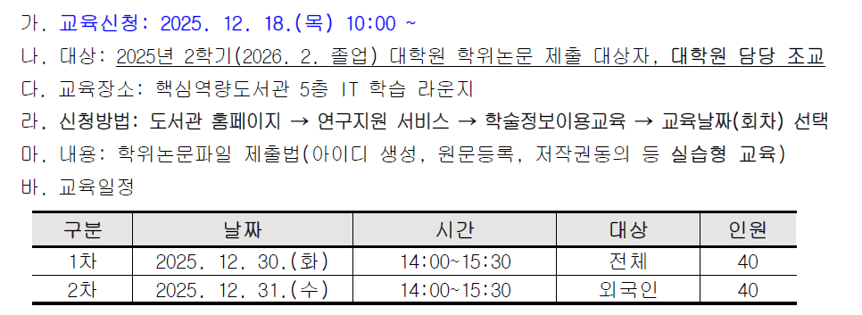 | 2025년 2학기 대학원 학위논문 온라인 제출법 교육 안내 | |||