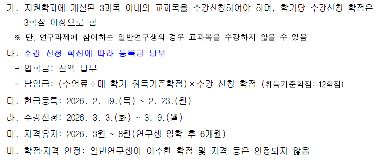 | 2026학년도 1학기「 일반 연구생」신청 안내 | |||