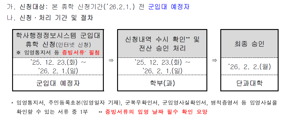 | 2026학년도 1학기 군입대 휴학바구니 (사전휴학) 신청 안내 | |||