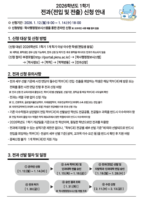 | 2026학년도 1학기 전과 실시 계획 안내 | |||