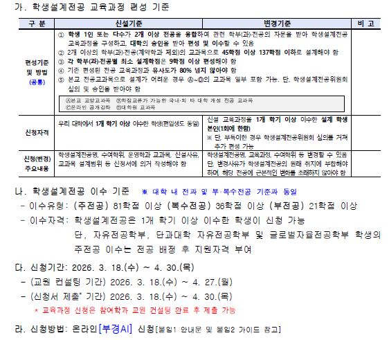 | 2026학년도 2학기 개설 예정 학생 설계 전공 신설 및 변경 신청 안내 | |||