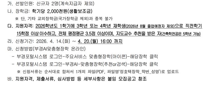 2026-1학기 정효택 장학생에 대해 안내드립니다.
