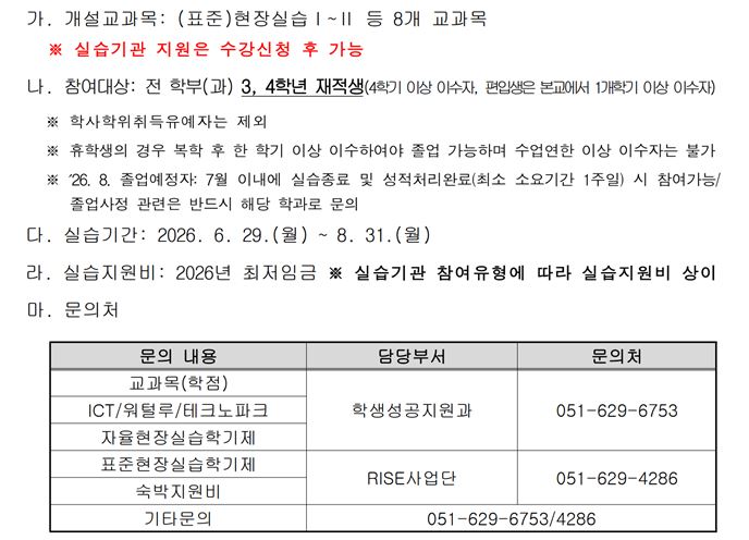 | 2026학년도 하계 학기 현장 실습 학기제 참여 실습생 모집 안내 | |||