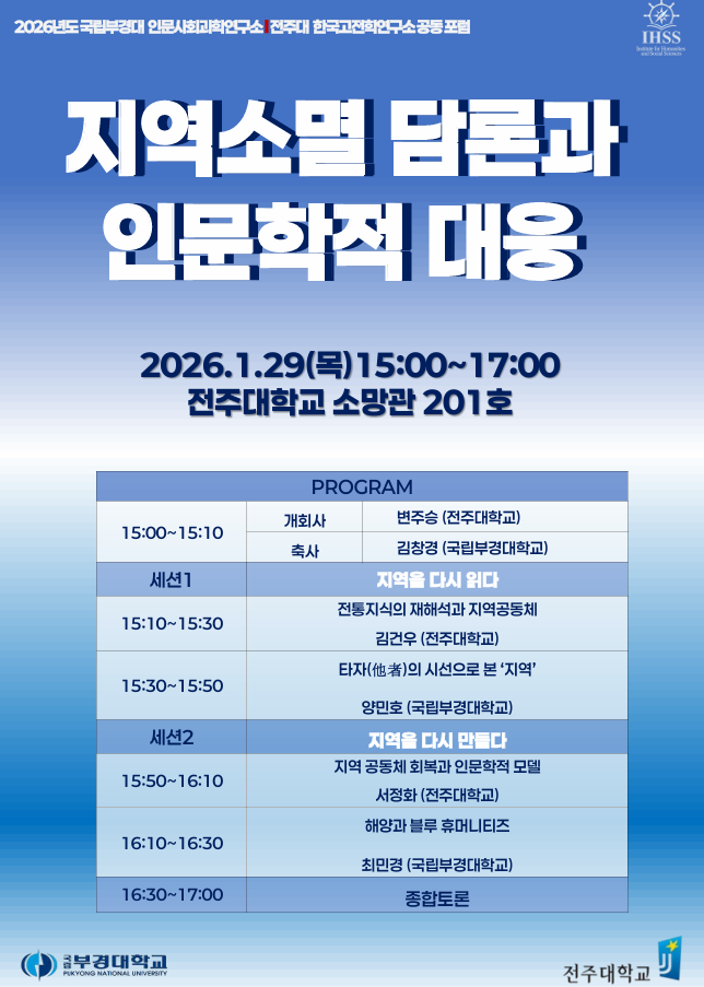 [26/01/29] 전주대학교 한국고전학연구소 연합 포럼 <지역소멸 담론과 인문학적 대응>