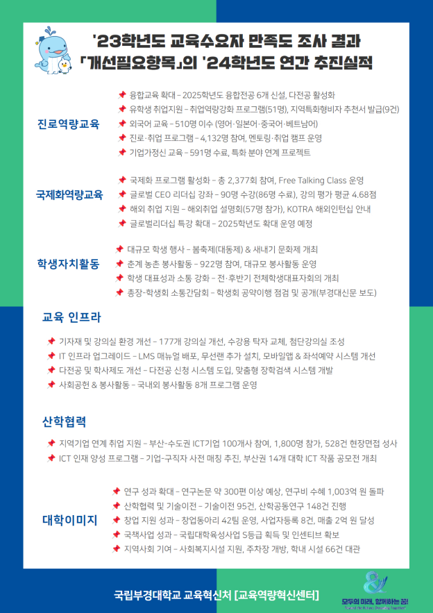 2023년 교육수요자 만족도 조사결과에 따른 2024년 부서별 주요 개선실적을 알려드립니다.