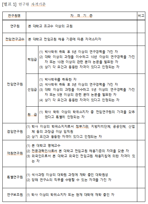 2. 각 연구원의 자격 및 임명은 연구원의 기준에 따르며 [별표 1]과 같다.