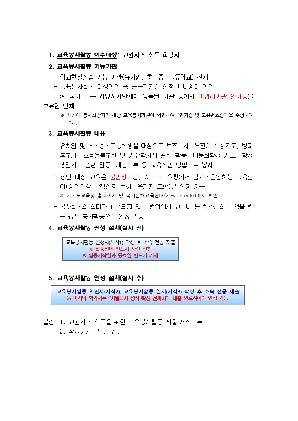 [교대원] 교육봉사활동 절차 및 신청서 서식 안내