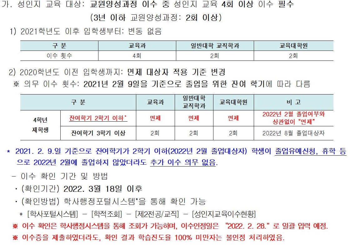 [교대원] 성인지 교육 면제 대상자 기준 변경 안내