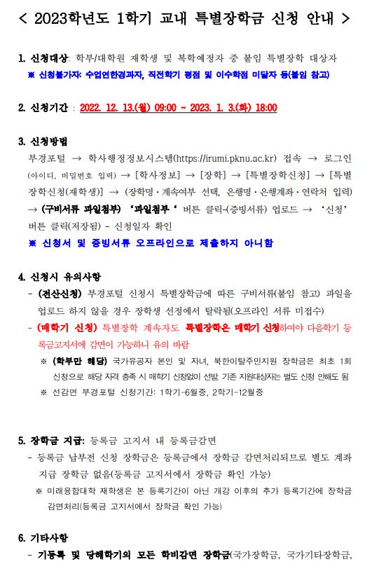 (~23.01.03.) 2023학년도 1학기 교내 특별장학금 신청 안내