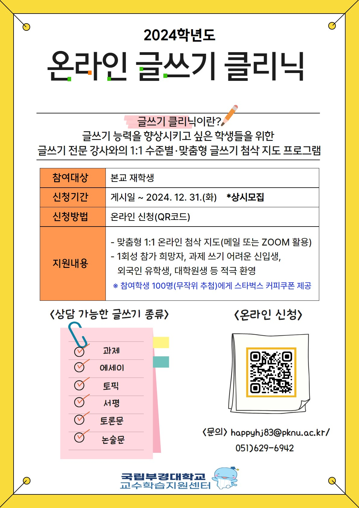 [교육혁신성과원] 2024학년도 글쓰기 클리닉 신청안내