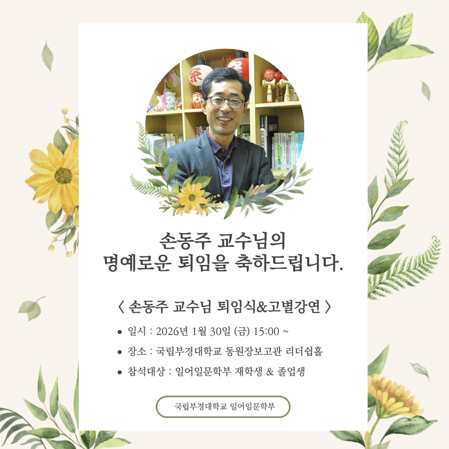 손동주 교수님의 퇴임식&고별강연이 진행될 예정입니다.
