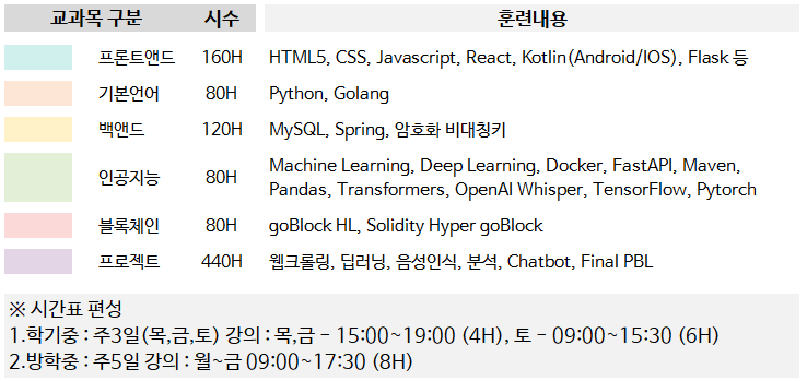 훈련기간 : 2025. 12. 4. ~ 2026. 8. 21. (총960시간) (수정 2025.11.10.)