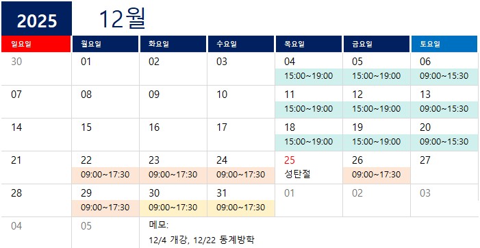 ▶3기 과정의 시간표는 재학생 참여를 위해 학기중과 방학기간이 상이합니다!◀