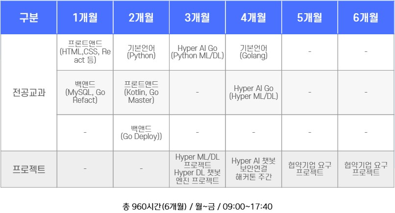 훈련기간 : 2026. 3. 3. ~ 2026. 8. 25. (총960시간)