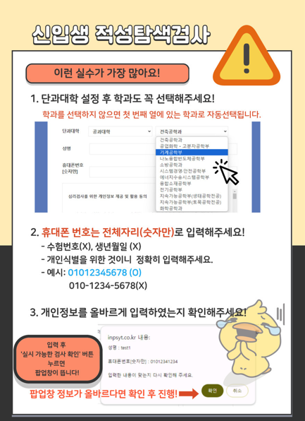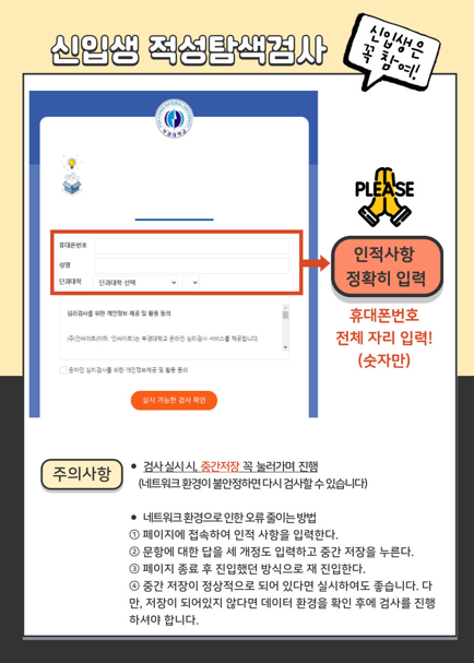 신입생 적성탐색검사 온라인 실시(~2.18.(수)까지)