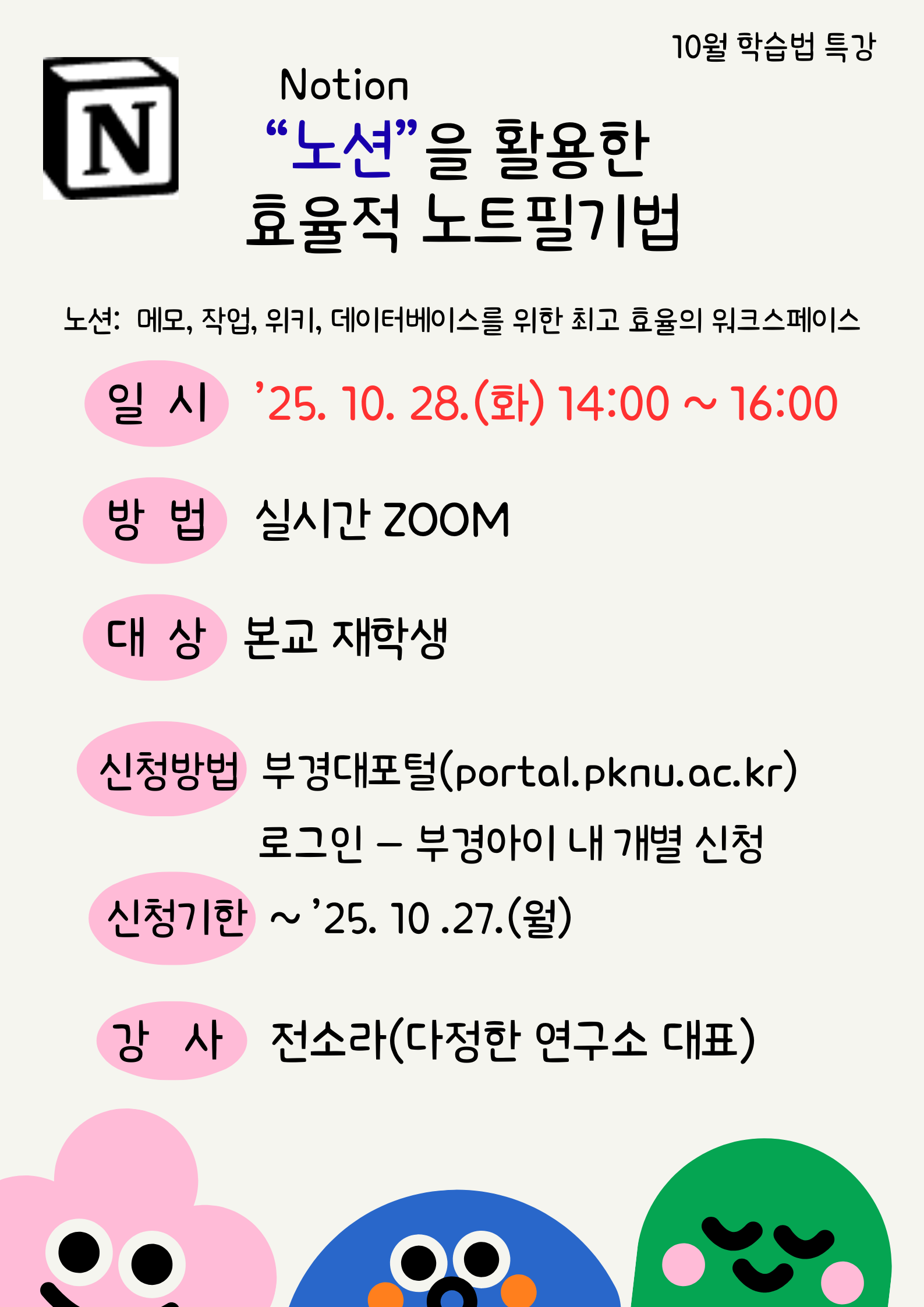 (교수학습지원팀) 2025학년도 10월 학습법 특강 실시 안내