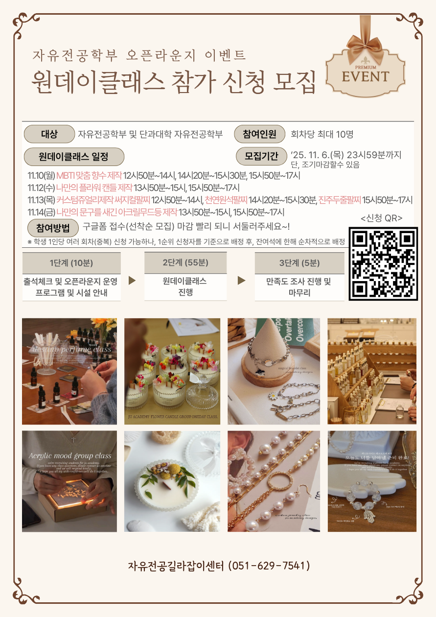 (자유전공학부 오픈 라운지 이벤트) 원데이 클래스 참가 신청 모집