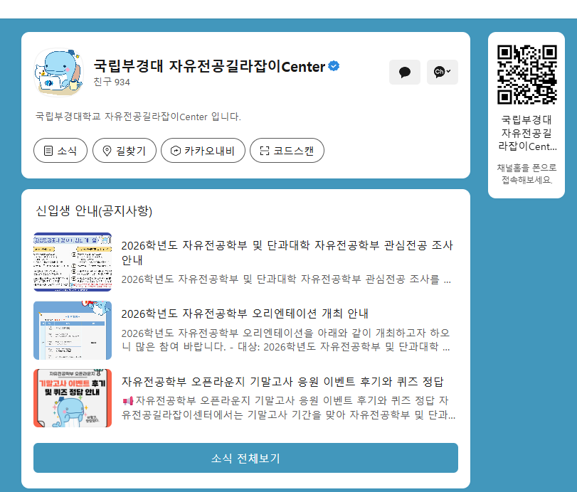 자유전공길라잡이센터에서 카카오 채널을 운영하고 있습니다.
