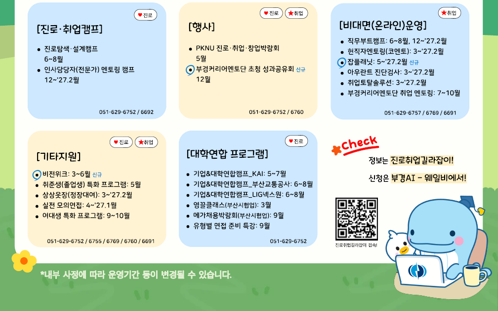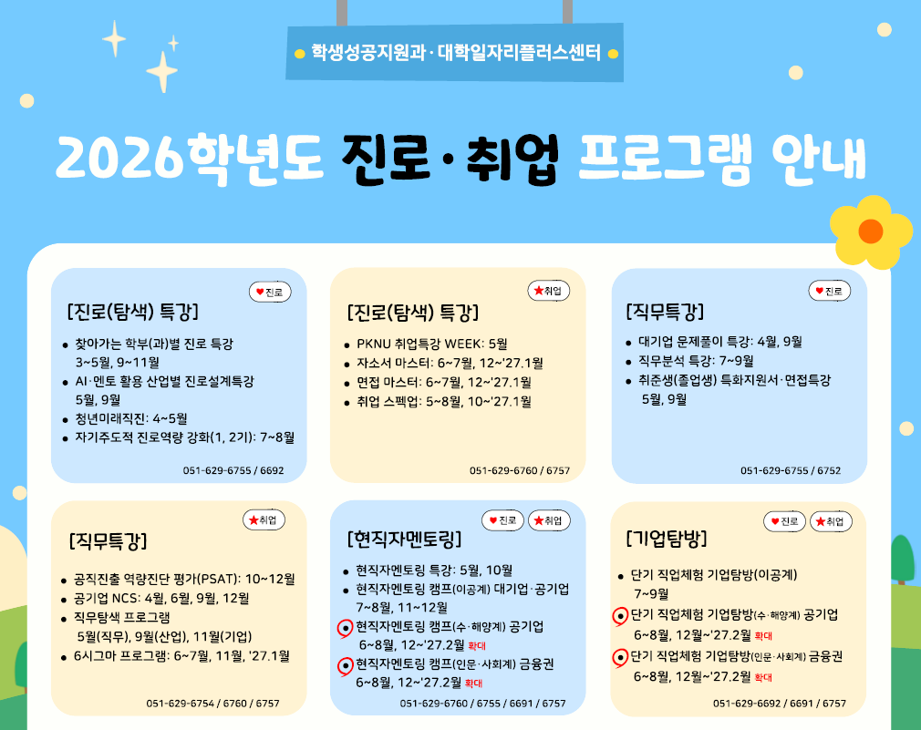 (학생성공지원과, 대학일자리플러스센터) 2026학년도 연간 진로취업 프로그램을 안내드리오니 아래 및 붙임 참고하시기 바랍니다.
