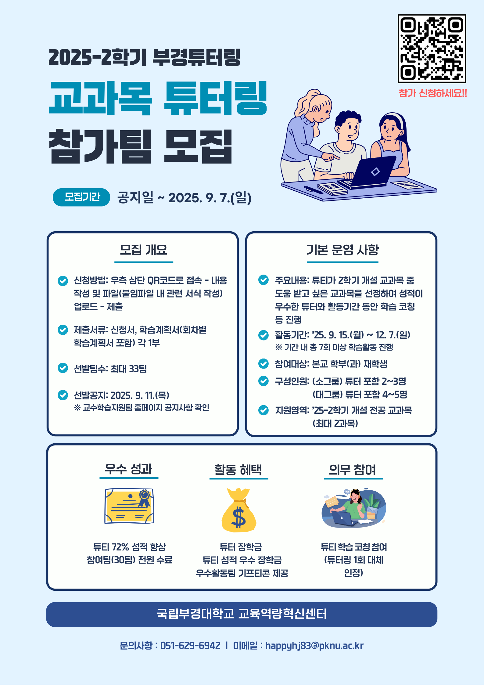 | 2025-2학기 부경튜터링(교과목 튜터링) 참가팀 모집 안내 | |||