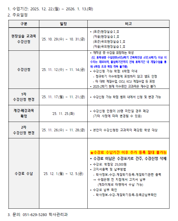 2025학년도 동계 계절수업 운영 안내