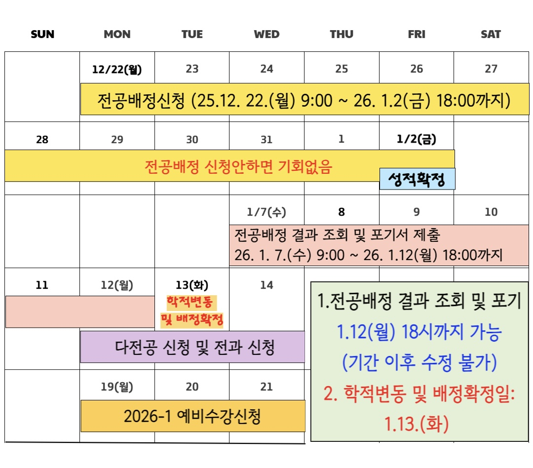 ★★ 2026년 1월 자유전공학부 전공배정 실시 안내