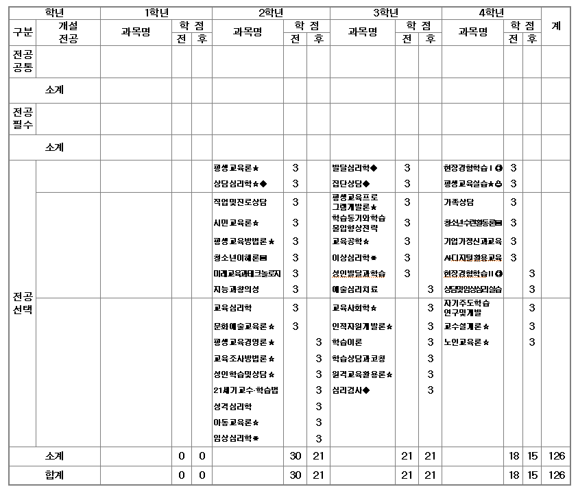 □ ☆ 과목은 평생교육사 자격증 취득을 위한 선택과목임
