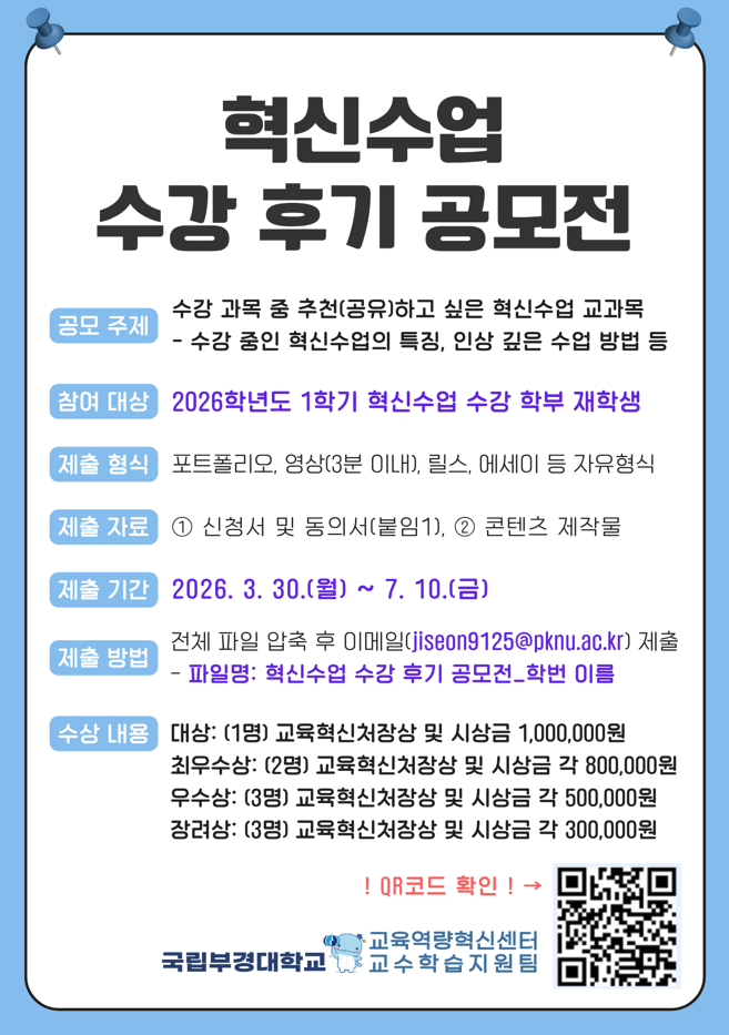 2026학년도 1학기 혁신수업 수강 후기 공모전 실시 안내