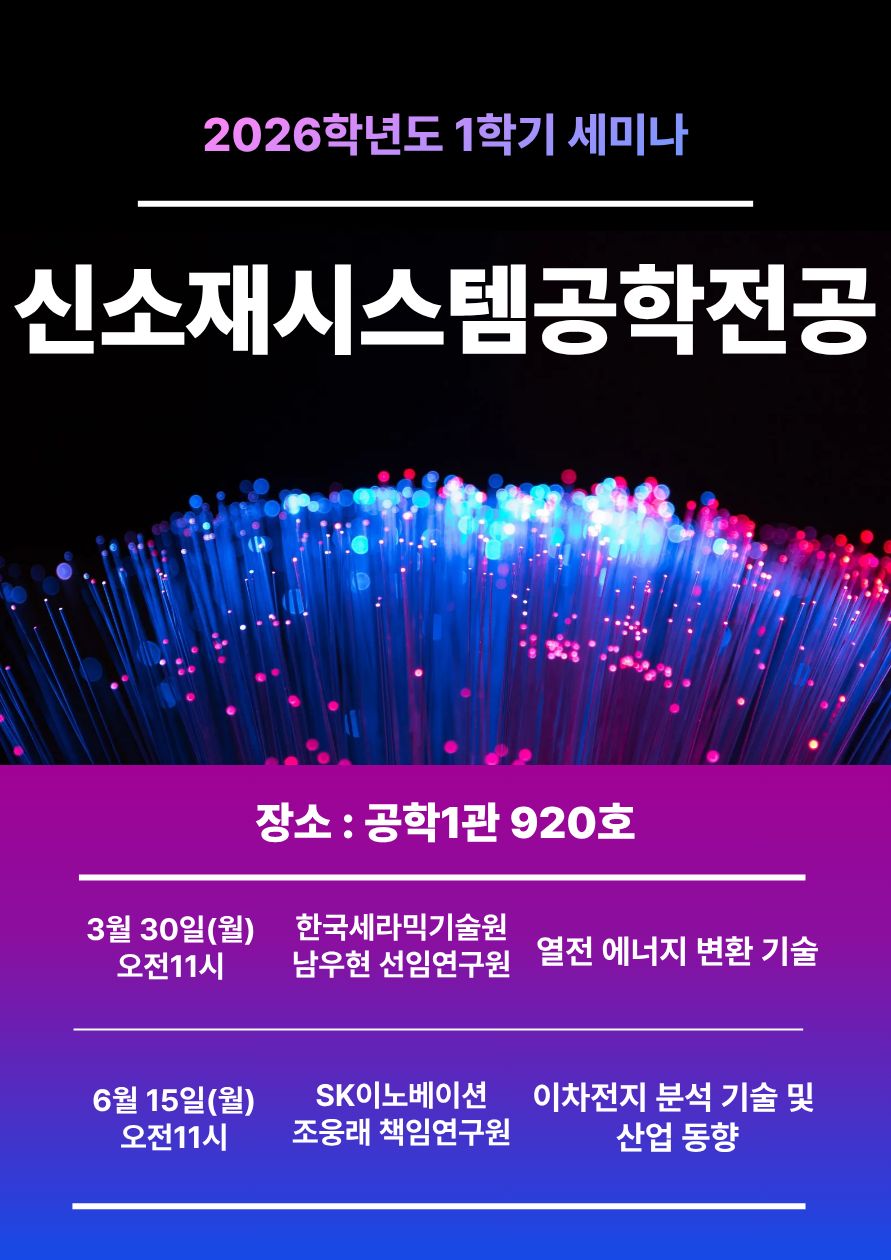 신소재시스템공학전공 - 2026년도 1학기 세미나 개최 안내