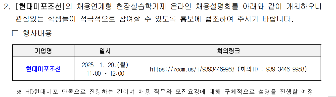 [현대미포조선 채용연계형 현장실습학기제 온라인 채용설명회 안내]