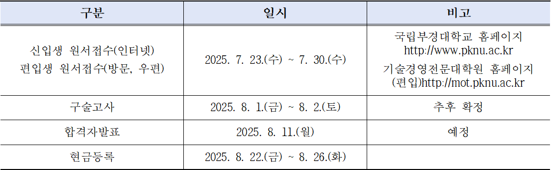 | [기술경영전문대학원] 2025학년도 후기 추가 2차 신입생 및 편입생 모집 안내 | |||