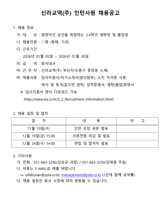 2025학년도 제3회 울산시설공단 신규직원 채용 공고