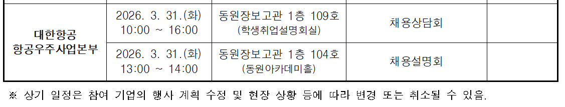 채용설명(상담)회 개최 안내(대한항공 항공우주사업본부)