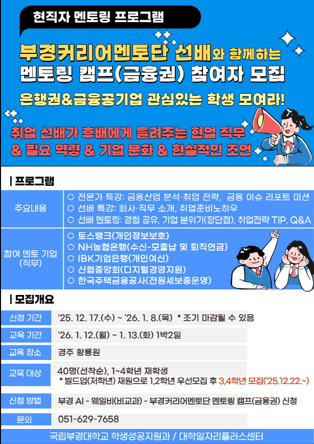 「부경커리어멘토단 멘토링 캠프(금융권)」프로그램 신청 안내