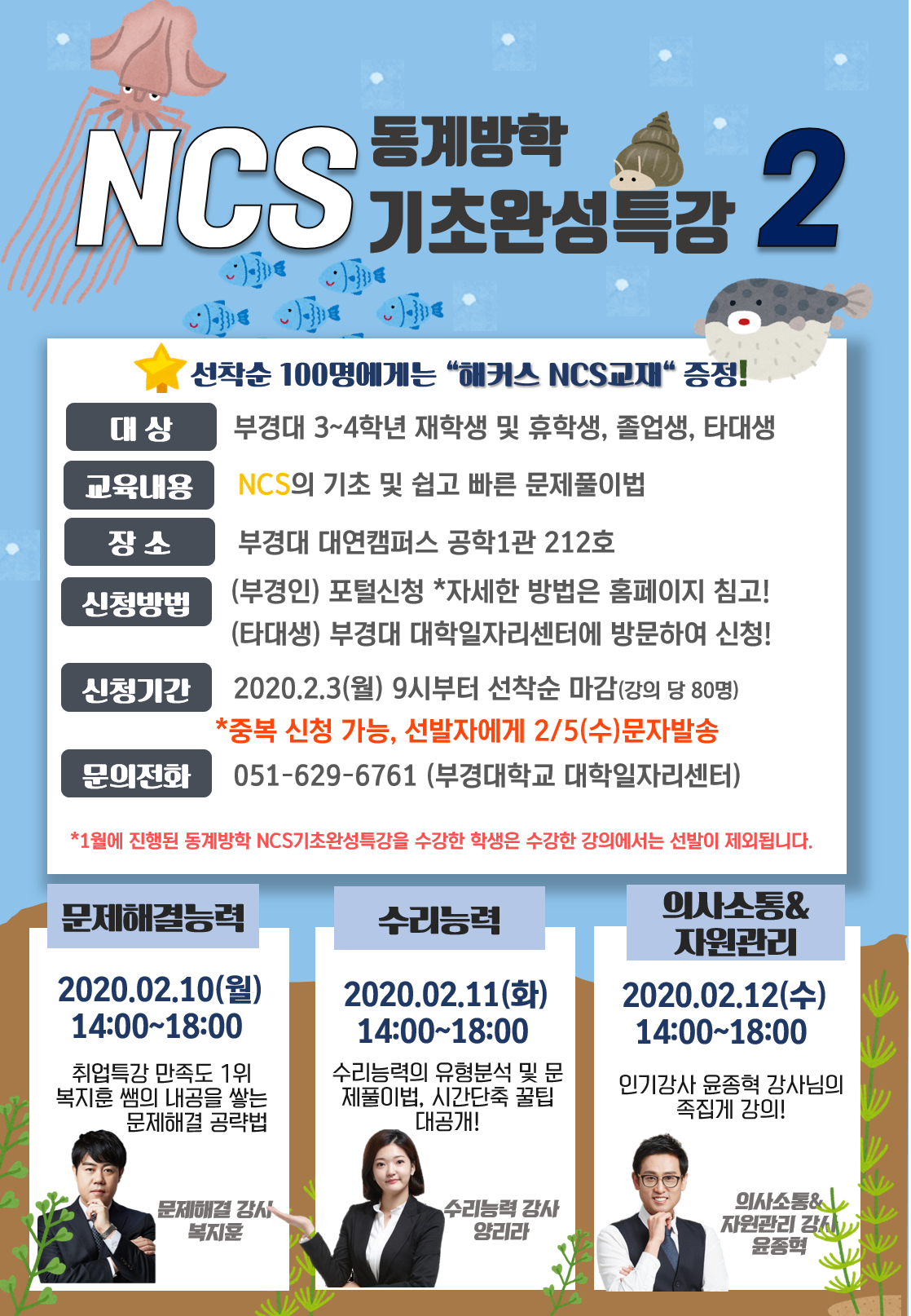 2019학년 2차년도 대학 일자리 센터 '동계방학 NCS 기초 완성 특강2' 참가자 모집안내
