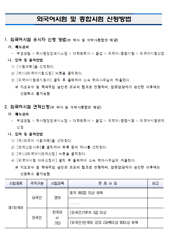 붙임 1. 2026학년도 1학기 외국어 및 종합시험 실시 계획 1부.