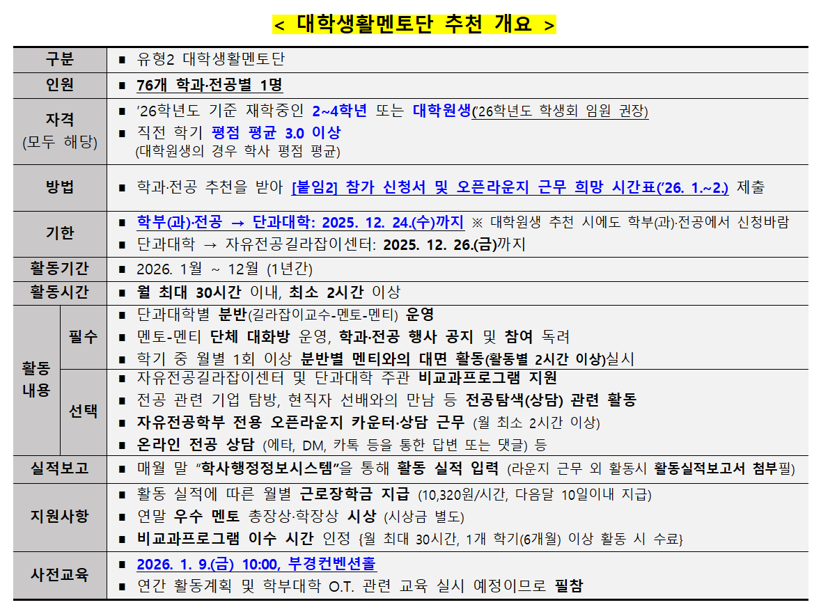 | 2026학년도 자유전공학부 유형2 대학생활멘토단 추천 안내 | |||