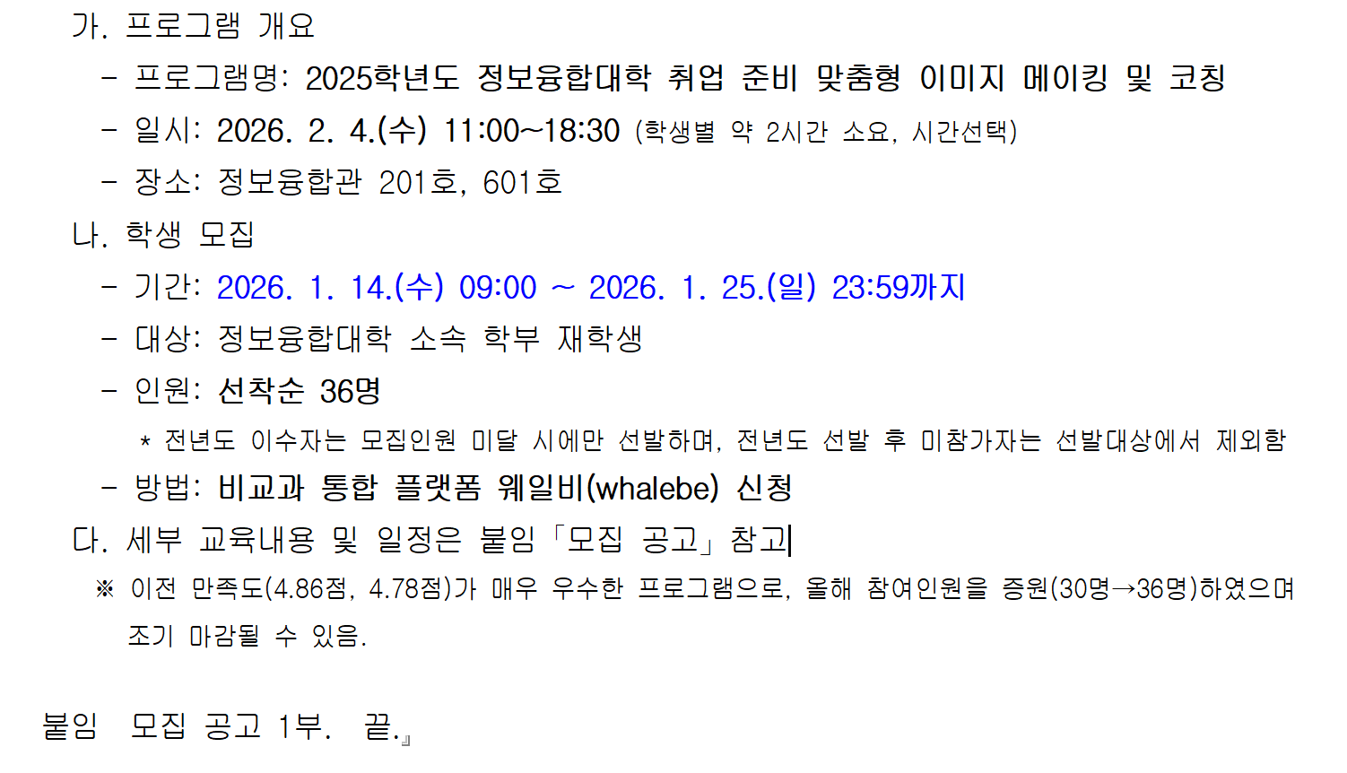 [홍보] 2025학년도 정보융합대학 취업 준비 맞춤형 이미지 메이킹 및 코칭 프로그램 안내