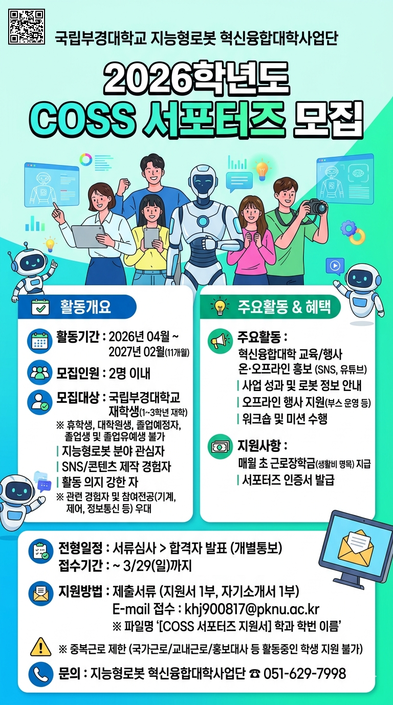 [홍보] 2026학년도 COSS 서포터즈 모집 안내 (지능형로봇혁신융합대학사업단)