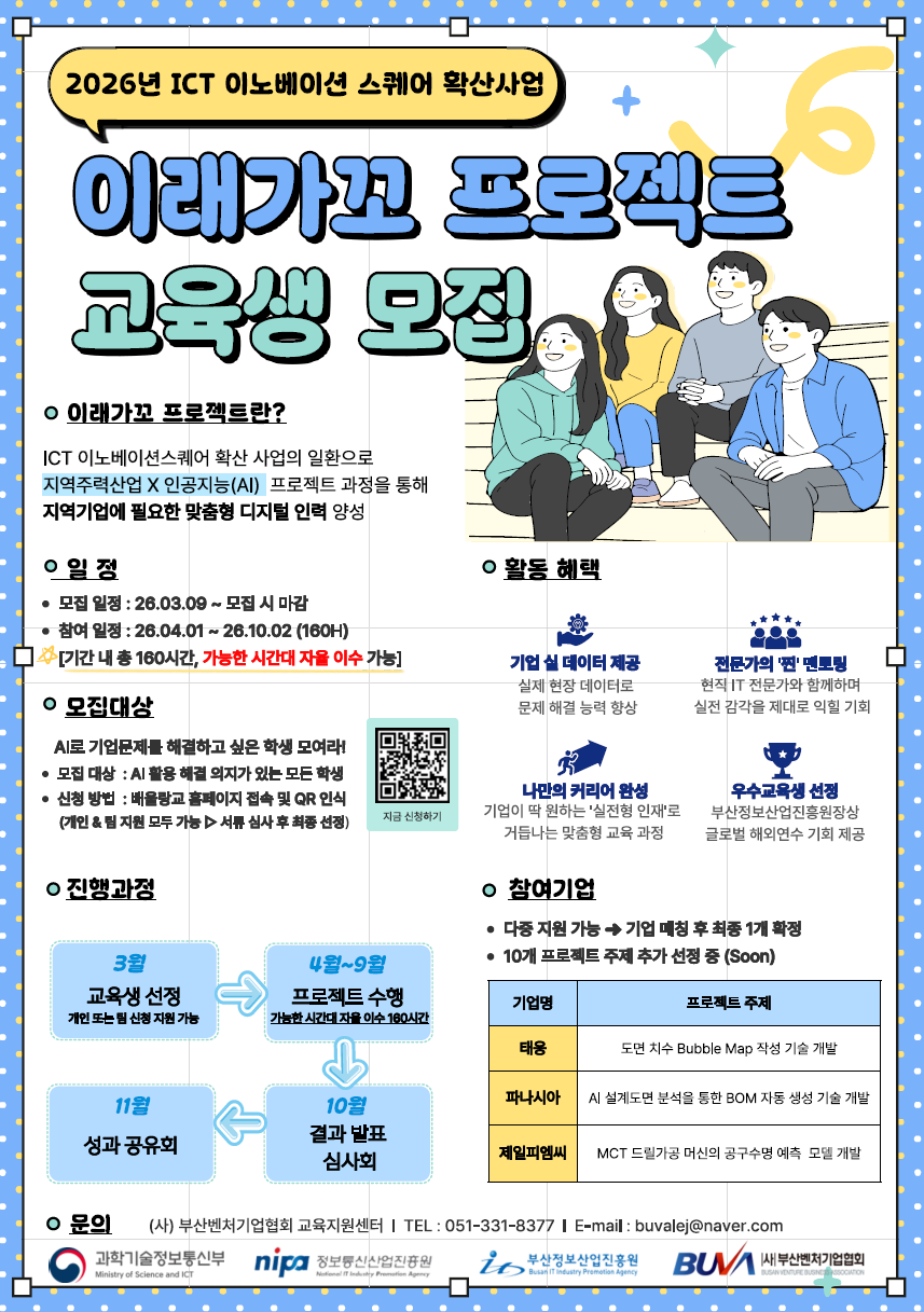 [홍보] 부산벤처기업협회 2026 이래가꼬 프로젝트 교육생 모집 안내
