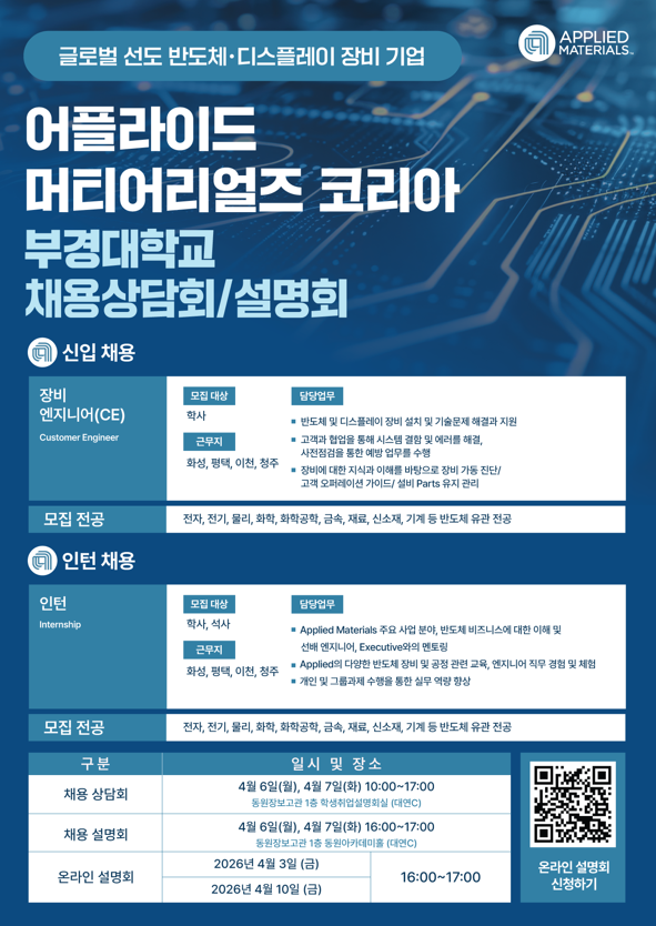 [채용] 어플라이드 머티어리얼즈 코리아 채용설명(상담)회 개최 안내