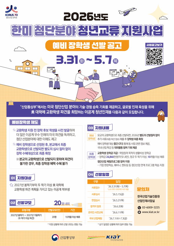 2026년 한미 첨단분야 청년교류 지원사업 예비 장학생 선발 안내