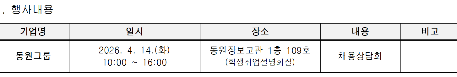 [채용] 동원그룹 채용상담회 개최 안내(4.14.)
