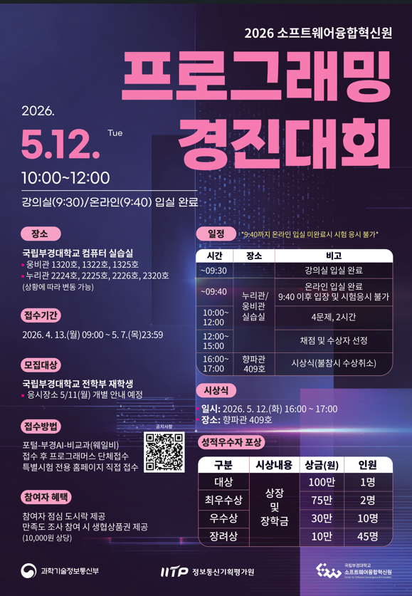 [홍보] 2026 소프트웨어융합혁신원 프로그래밍 경진대회 안내