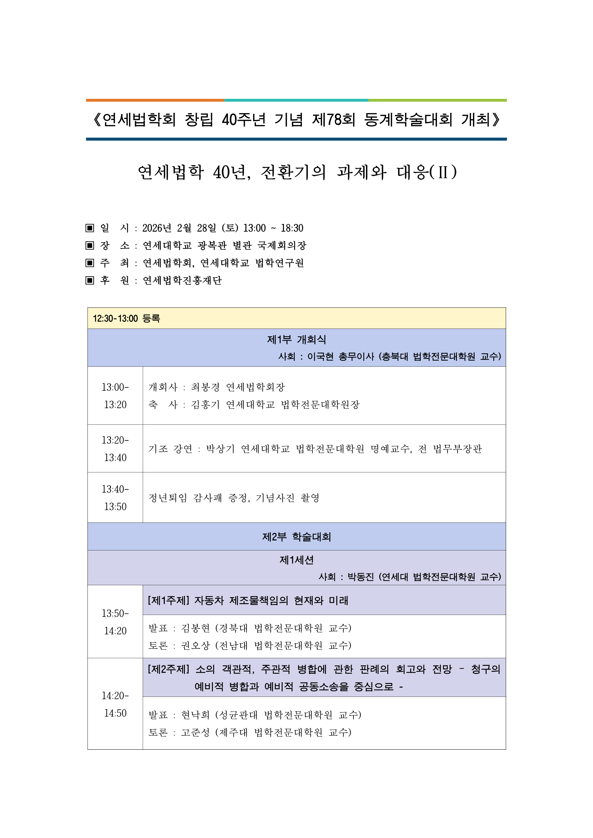 연세법학회 창립 40주년 기념 제78회 동계학술대회(김두진 교수)