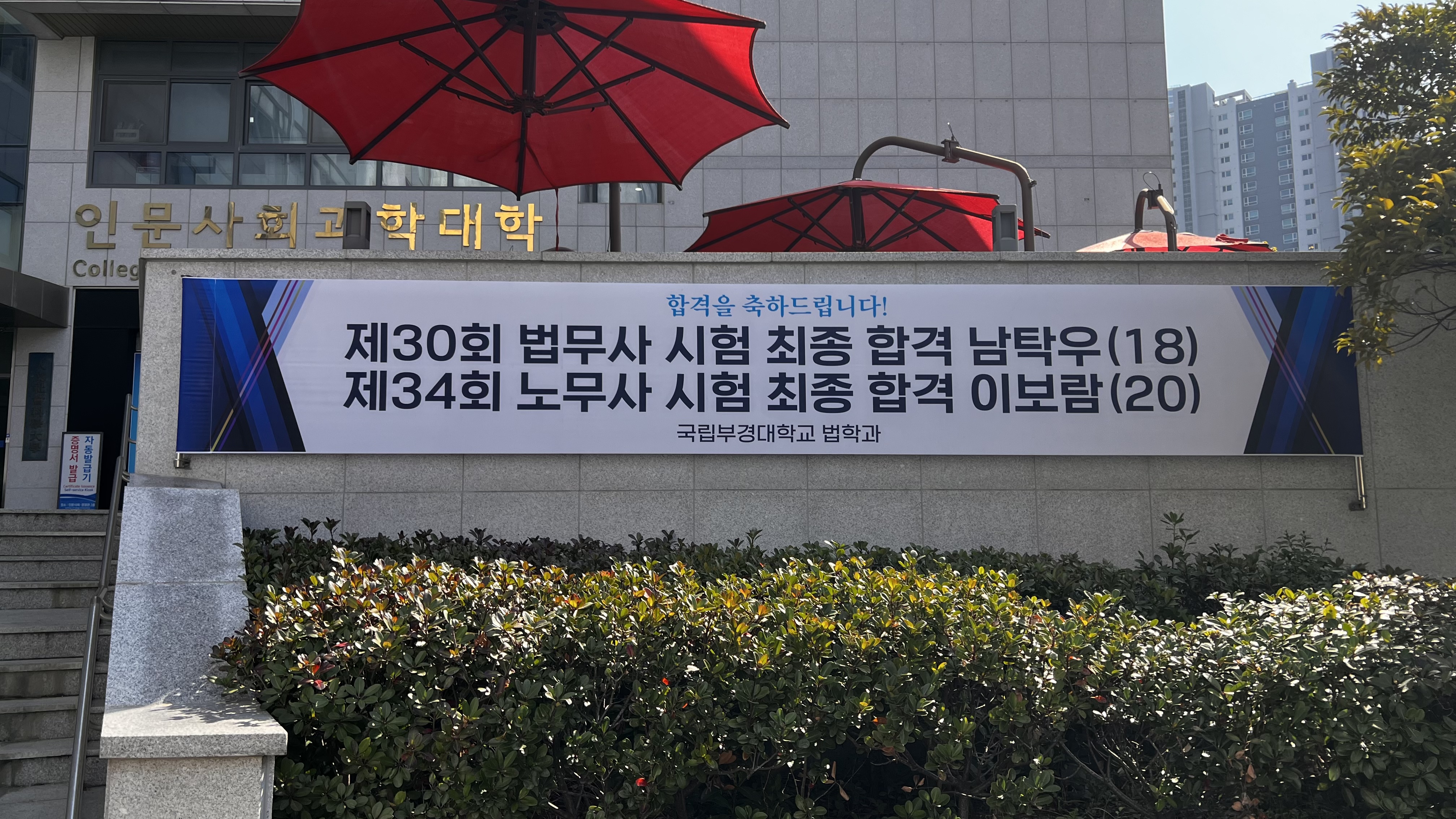 2026학년도 법률 전문자격증(법무사, 노무사) 합격자 축하 현수막