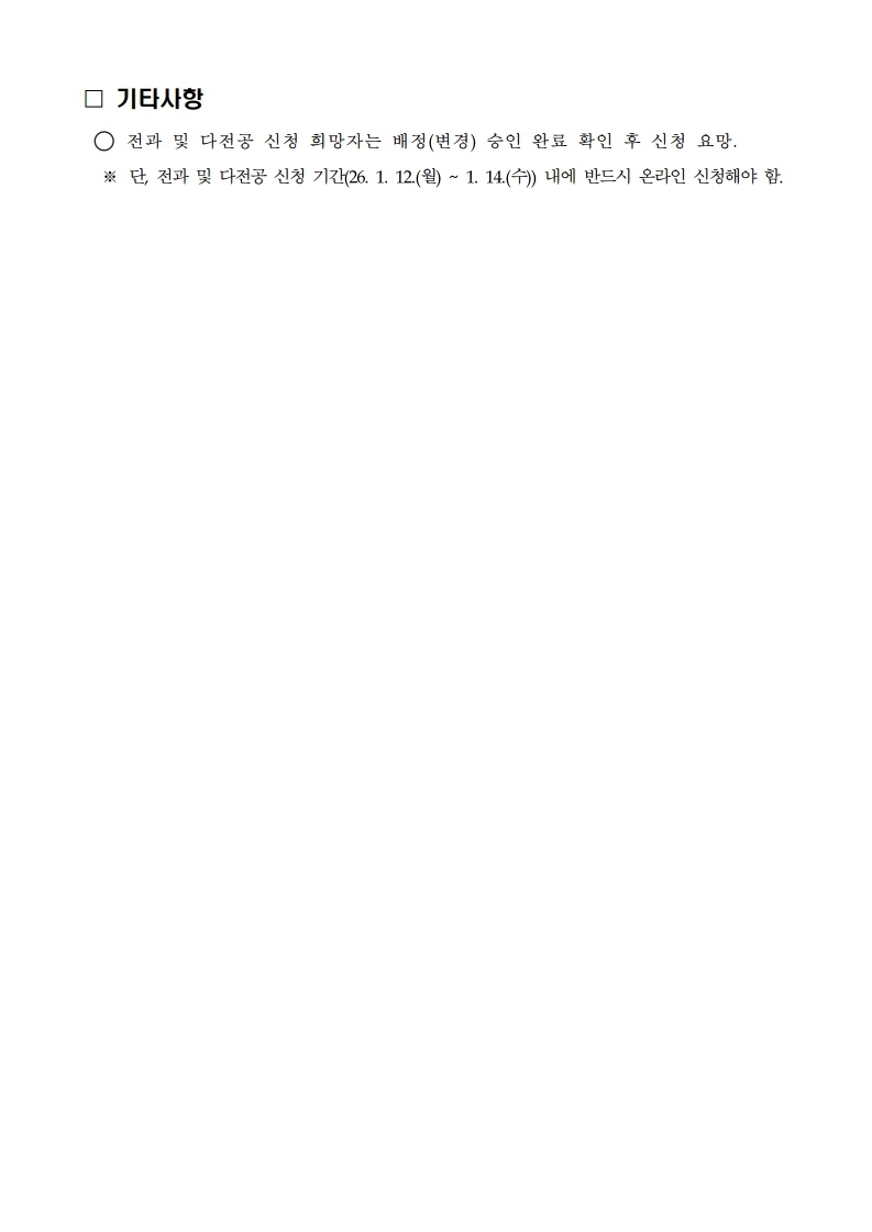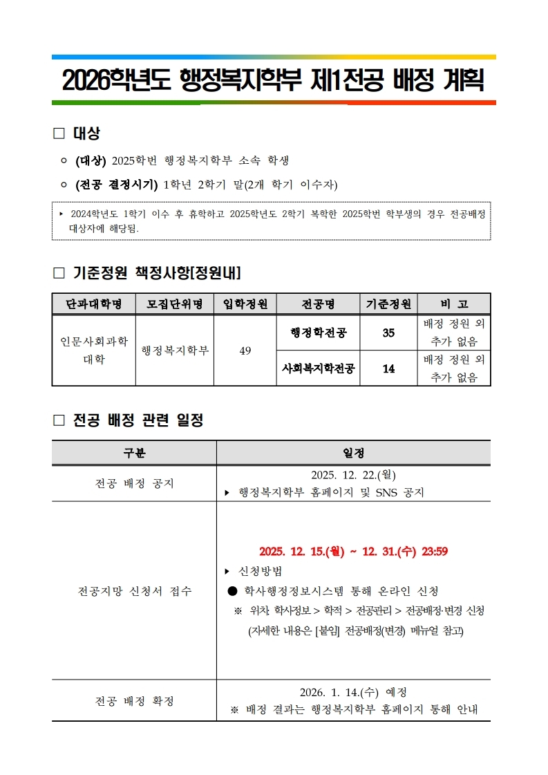2026학년도 제1차 행정복지학부 전공변경 계획