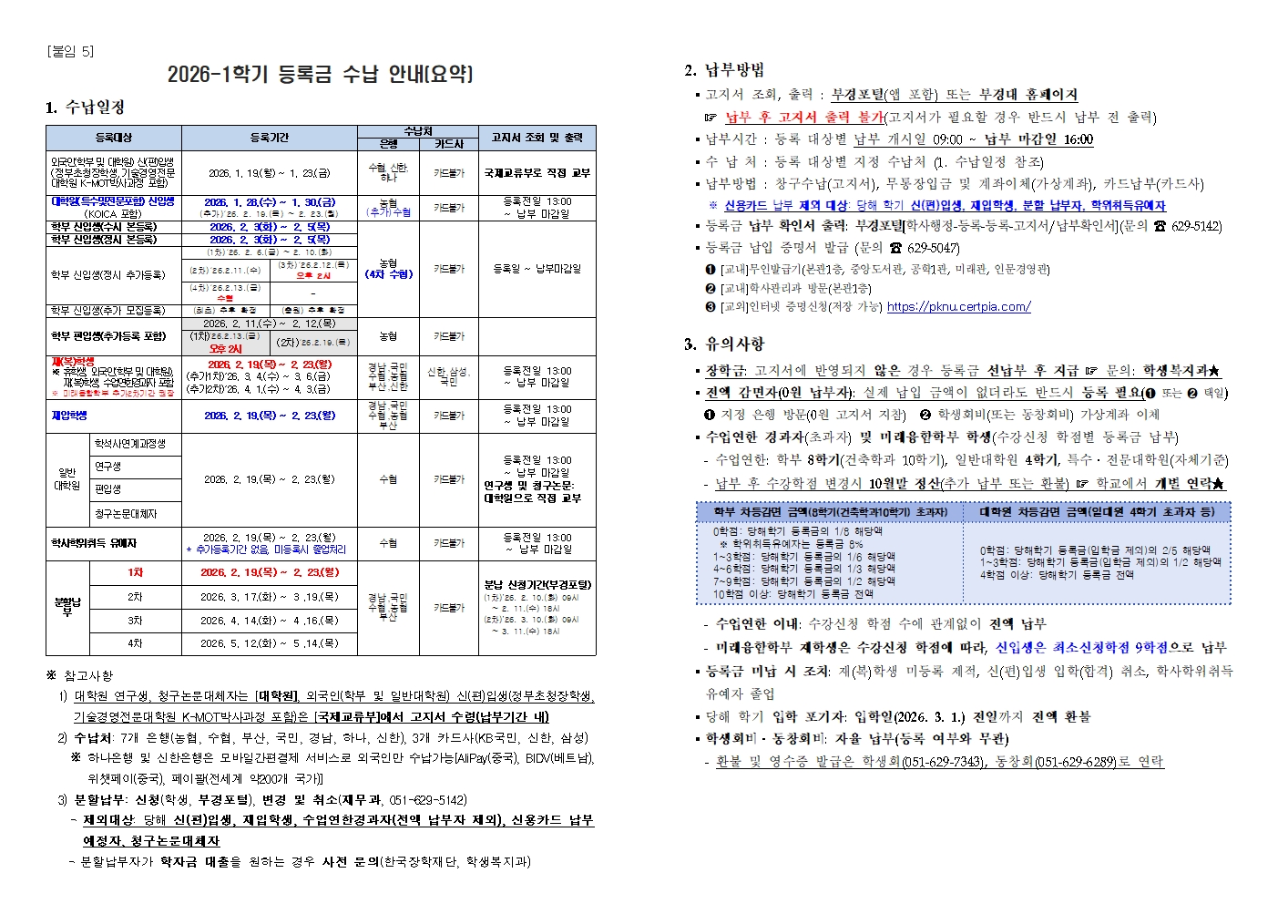 2026-1학기 학부 수시 신입생 교내 특별장학생 선발 안내